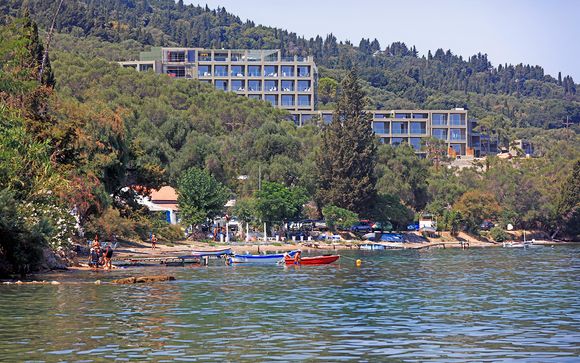 Located on the southeast coast of Corfu this hotel boasts stunning sea and mountain views. Das nächste Orts-Stadtzentrum mit Restaurants Bars und Einkaufsmöglichkeiten erreichen Sie nach ca. Guests at the accommodation can enjoy a buffet breakfast.